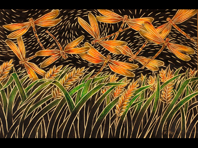 2004: Invented new art material “ Painted wood-carvings”. The new technique of wax crayon paintings was created