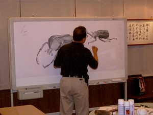 Wen-Yue Zhuang was born in Changhua, Taiwan, and graduated from National Taiwan University of Arts. He also obtained a certificate in education from National Taiwan Normal University, and later taught at Shih Chien University. He turned to insect painting after his second son, who has always been a great lover of insects, was permanently handicapped by a severe disease. His son, who graduated from the National Taiwan University’s graduate program in Entomology, and his wife, who is a writer, are his best companions in his exploration of the art and beauty of insects, the former providing him with knowledge about insects, and the latter assisting him in insect-breeding. Wen has held numerous exhibitions in Taiwan and abroad, and is known for the vividness of his works and the warm sentiments they convey. |